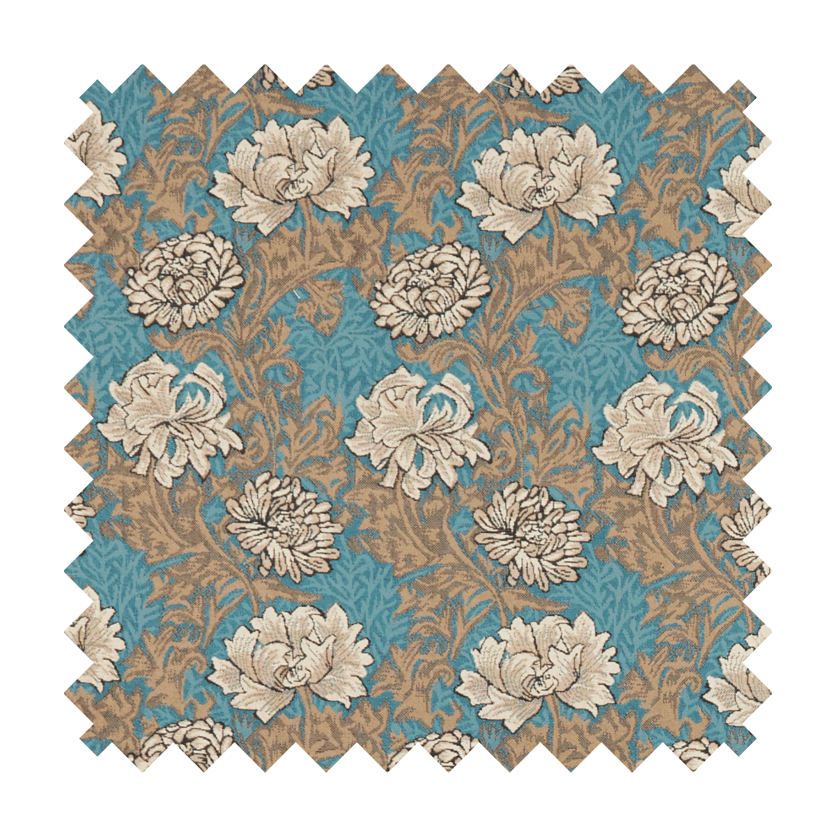 Chrysanthemums Aqua Tapestry Fabric