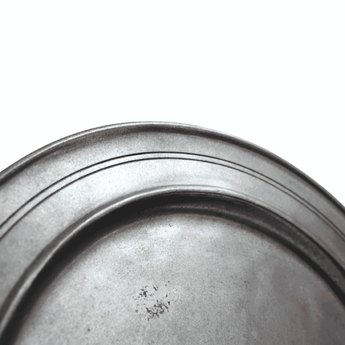 Handcrafted in Italy, this decorative pewter plate features classic triple-reeded edging and a smooth, refined centre. Finished with an antiqued patina, it blends traditional craftsmanship with understated elegance, making it an ideal piece for display.