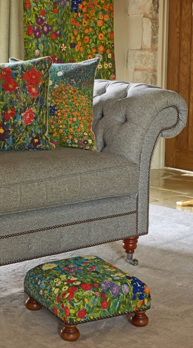 Hines' finely woven footstools are a true testament to craftsmanship. Skilfully crafted by artisans and upholstered by hand in the United Kingdom with the finest quality tapestry-woven fabrics, featuring classical studding and hand-polished beech bun feet, each stool promises enduring durability. Thoughtfully designed to complement coordinating home accessory ranges, these stools, both an elegant statement and a superior piece of furniture, infuse living spaces with refined quality that will last for years to come.