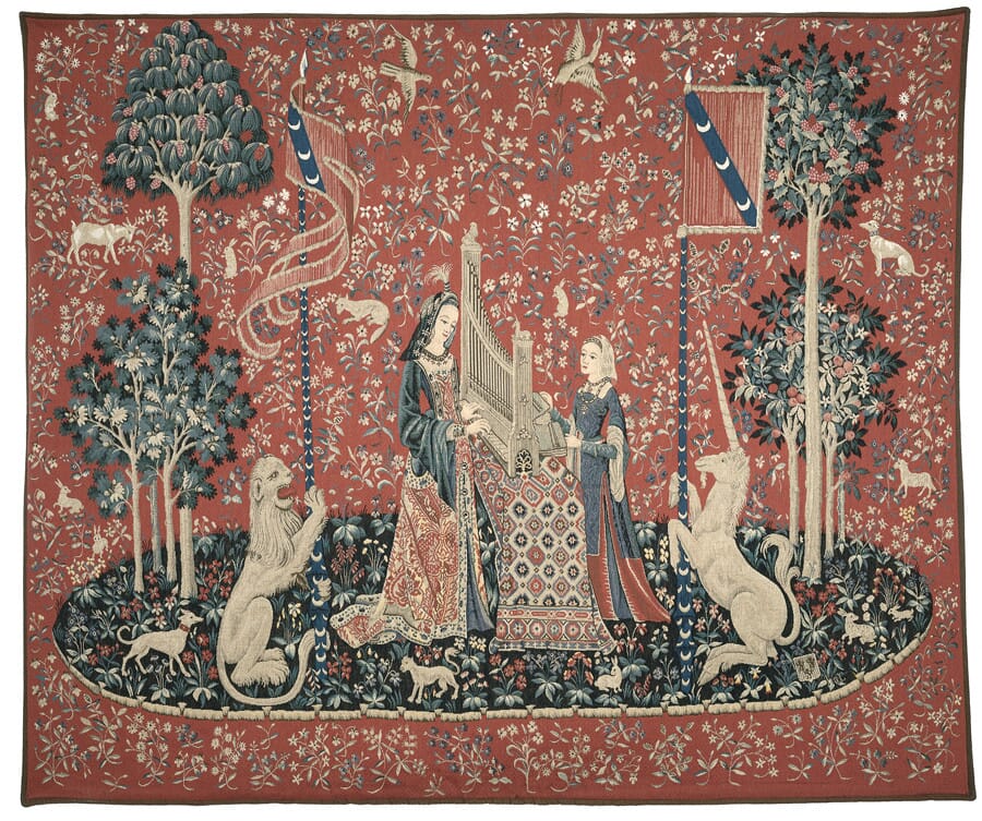 Lady with the Unicorn 'Dame a L'Orgue' Loom Woven Tapestry - 180 x 240 cm (5'11" x 7'11") - Requires Rod Size 6