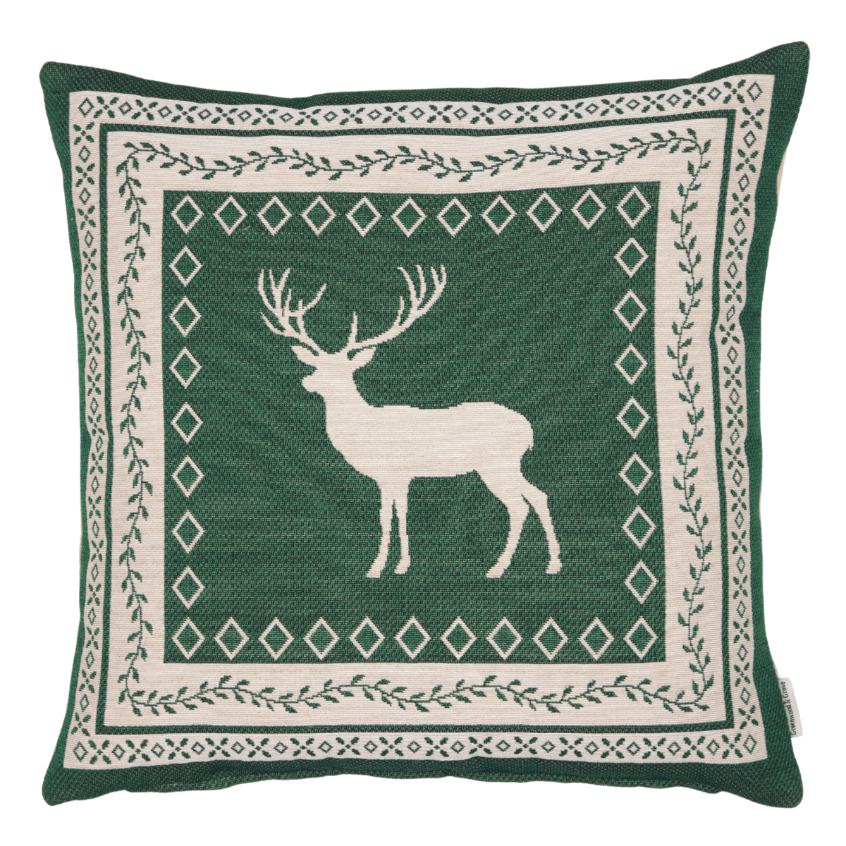 Nordic Stag Green Woven Cushion - 42x42cm (17"x17")