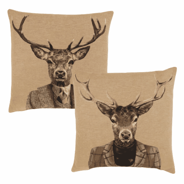Pair of City Stag & Country Stag Tapestry Cushions with Feather Filler - 46x46cm - Save £20