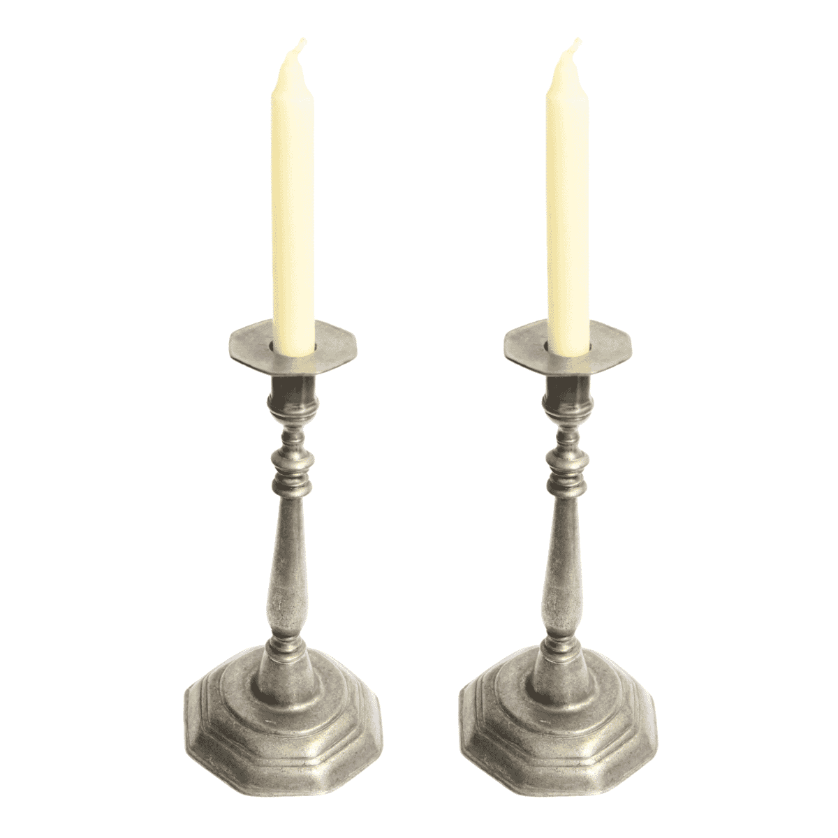 A pair of beautifully detailed pewter candlestick holders handcrafted in Italy. Featuring an elegant, sculpted base and an antiqued finish, it blends timeless design with traditional craftsmanship. Perfect for adding a touch of classic charm to any table or mantelpiece.
