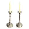 Pair of Pewter Candlestick Holders - Approx. H.24 x W.11 cm - Last Pieces Remaining!
