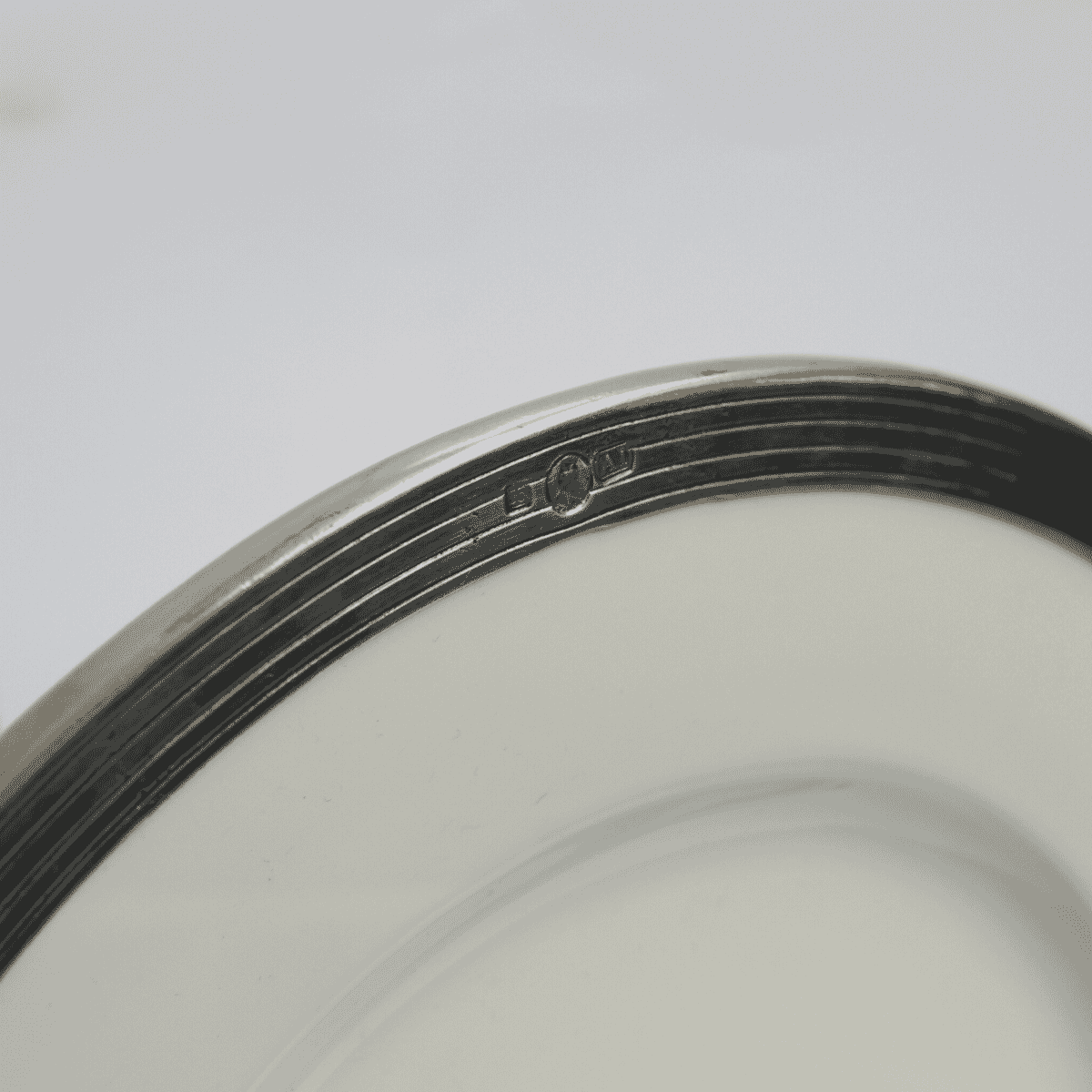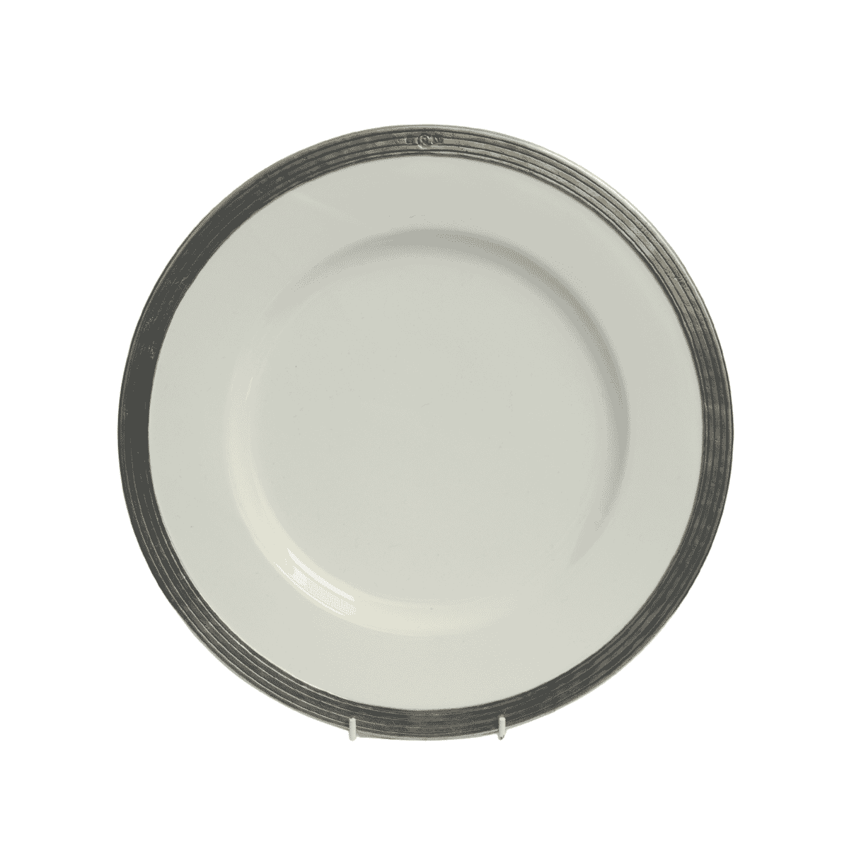 A classic ceramic and pewter plate made in Italy, featuring a smooth white ceramic centre framed by a beautifully ribbed pewter rim. Finished with a traditional patina, it blends clean simplicity with timeless Italian craftsmanship—an elegant piece for both everyday dining and sophisticated table settings.