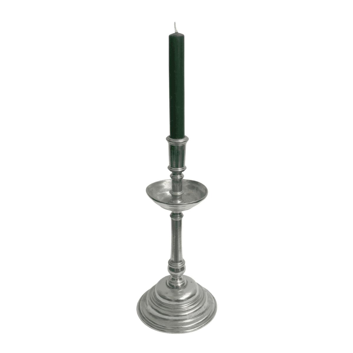 A beautiful detailed pewter candlestick holder handcrafted in Italy. Featuring an elegant, sculpted base and an antiqued finish, it blends timeless design with traditional craftsmanship. Perfect for adding a touch of classic charm to any table or mantelpiece.