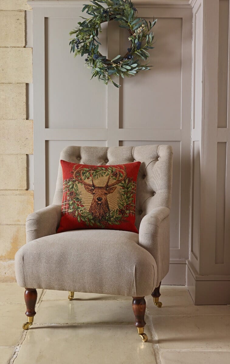 Stag's Head & Wreath Tapestry Cushion - 46x46cm (18"x18")