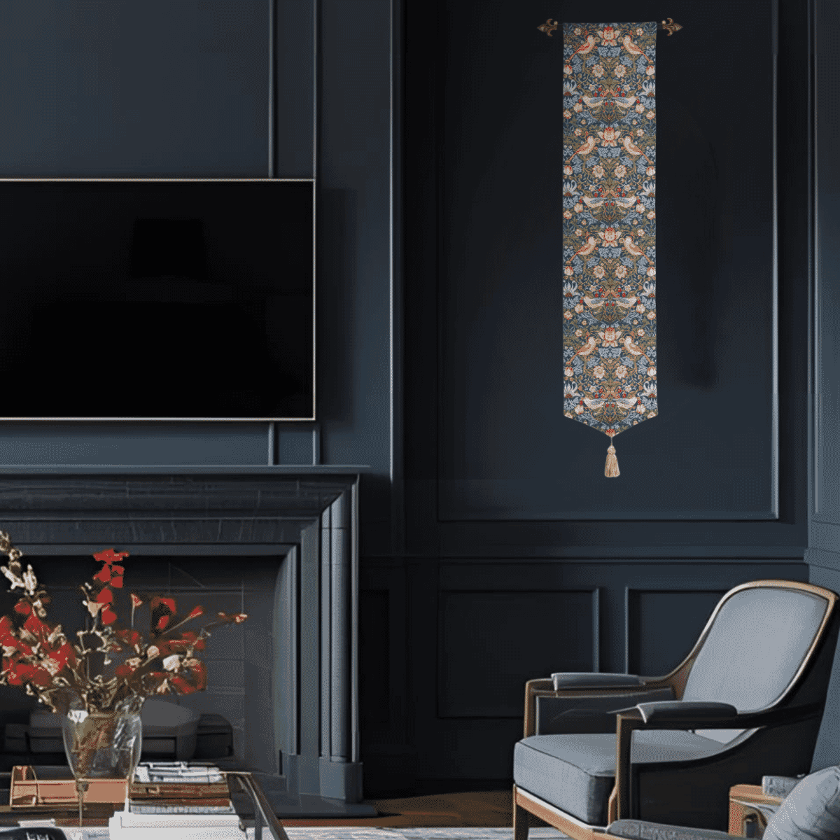 Strawberry Thief Blue Tapestry Banner - 154 x 32cm (61" x 13") - Requires Rod Size 1
