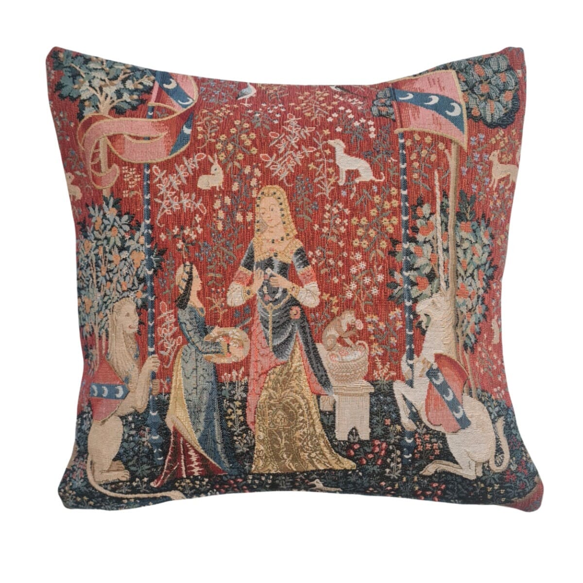 The Lady & Unicorn - Smell Tapestry Cushion with Feather Filler - 46x46cm (18"x18") - Last Piece Remaining!