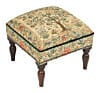 Meticulously handcrafted in the United Kingdom, this upholstered stool boasts classic studding and hand-polished solid beech legs, showcasing Hines' beautiful tapestry design perfect as a striking centrepiece.